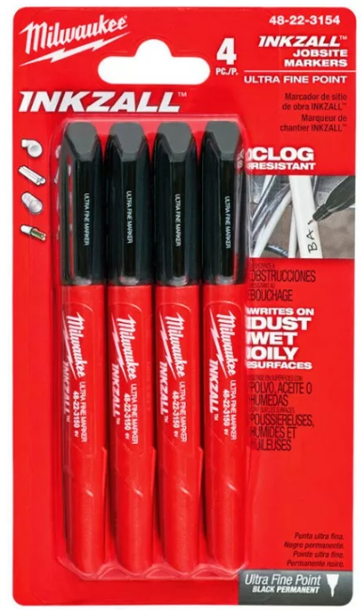 - Маркер INKZALL для стройплощадки тонкий Черный (4шт)