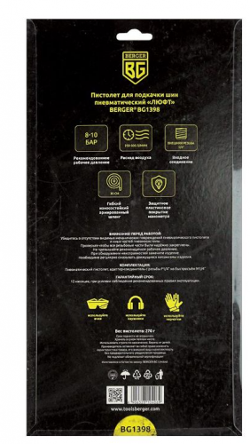 - Пистолет для подкачки шин пневматический BERGER «ЛЮФТ» BG1398