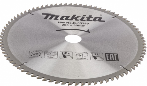 - Пильный диск для дерева, 260x30x2.6/1.8x80T