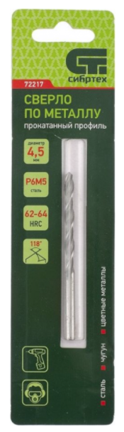 сверло по металлу, 4,5 мм, р6м5// сибртех, купить metabo, купить husqvarna, купить bosch, купить makita, купить hitachi, купить hikoki, купить oregon, купить stihl