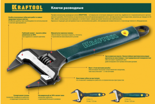 - Ключ разводной SlimWide Ultra, 200 / 38 мм, KRAFTOOL
