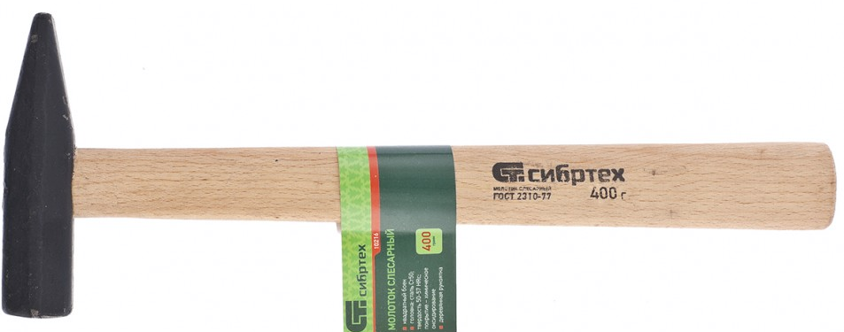 - Молоток слесарный, 400 г, квадратный боек, деревянная рукоятка// Сибртех
