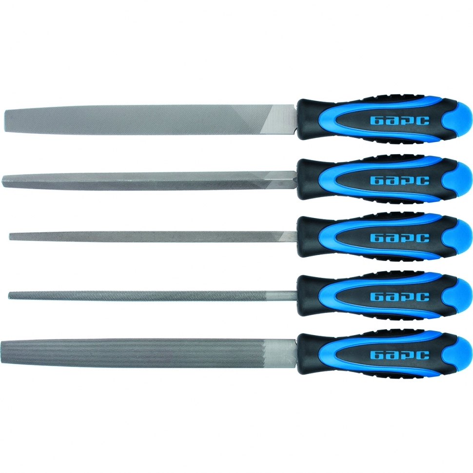 - Набор напильников 200 мм, 5шт., двухкомпонентная рукоятка // БАРС